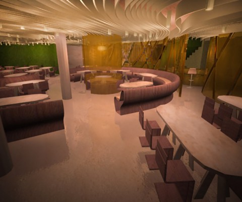 Así, surgen las líneas sinuosas del techo de la primera planta, dónde cuelgan telas traslúcidas que dan sensación de ingravidez y movimiento, y que conjuntan a la perfección con la organicidad y permeabilidad de los elementos de separación entre espacios. El espacio público de la segunda planta va un paso más allá en la búsqueda de la “naturaleza en el interior” y elimina por completo el mobiliario, creando pequeños valles que sirvan como espacios de reunión y disfrute, haciendo suyo el eslogan “consiente a tus sentidos”.